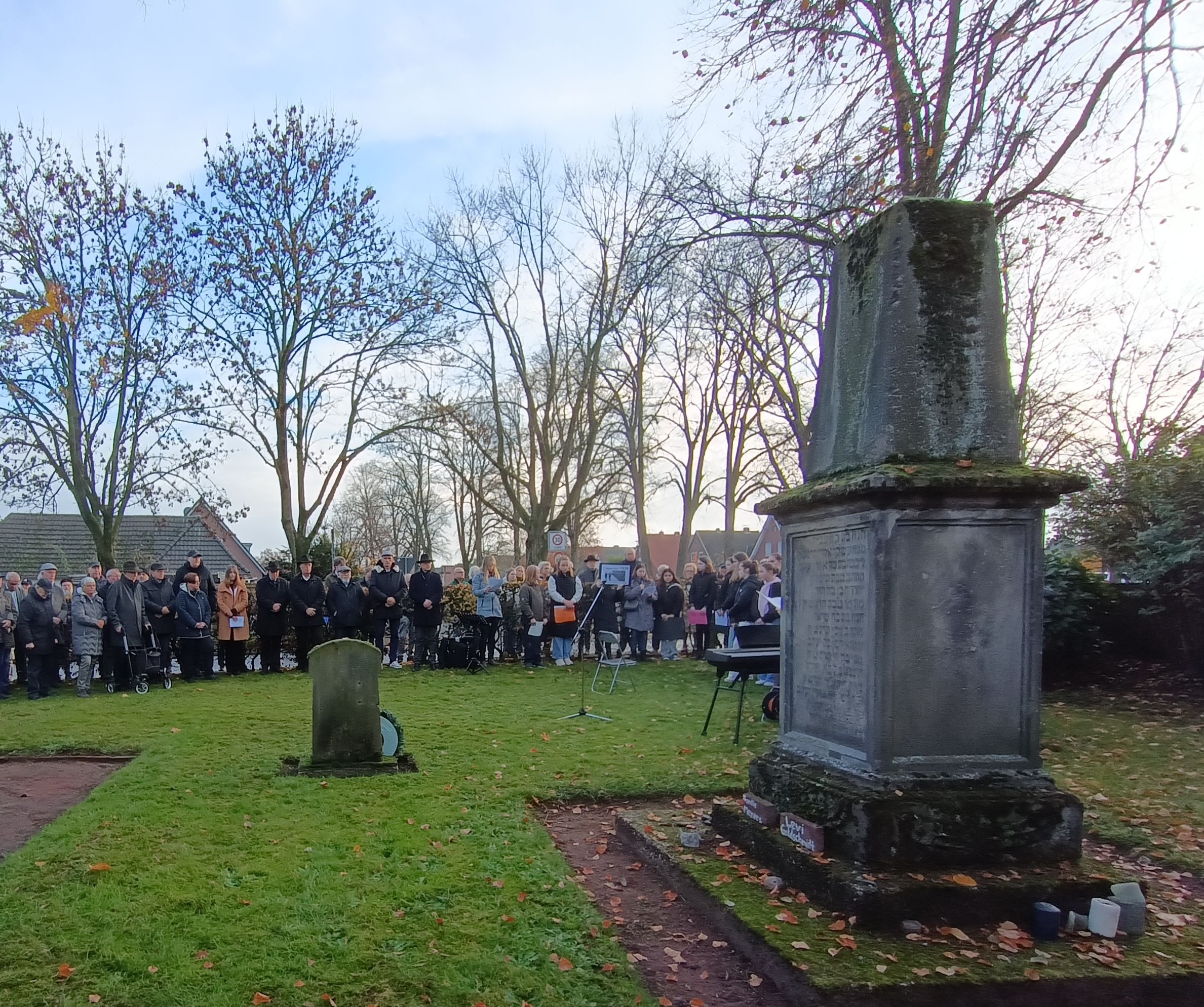 Die Schüler der Herta-Lebenstein-Realschule hatten den historischen Hintergrund für die niederträchtige Judenverfolgung im Nationalsozialismus mit plakativen Sätzen erläutert. Über 100 Bürger der Stadt Stadtlohn verfolgten die Vorträge der Schüler und die Rede des Bürgermeisters Dittmann, sowie die Kranzniederlegung des Bürgermeisters und des Vorsitzenden des Heimatvereines.